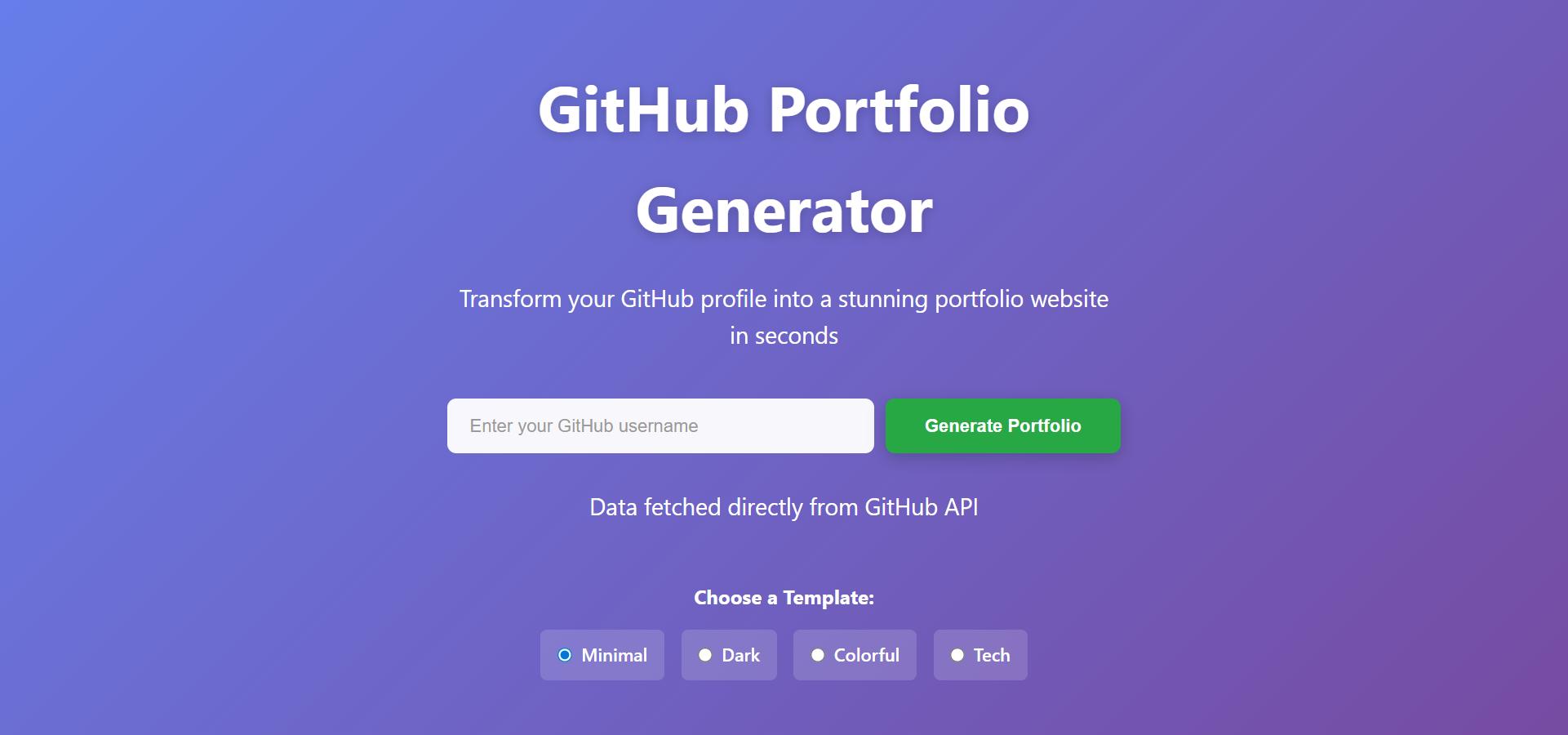 Website that generates a stunning portfolio website from your Github profile