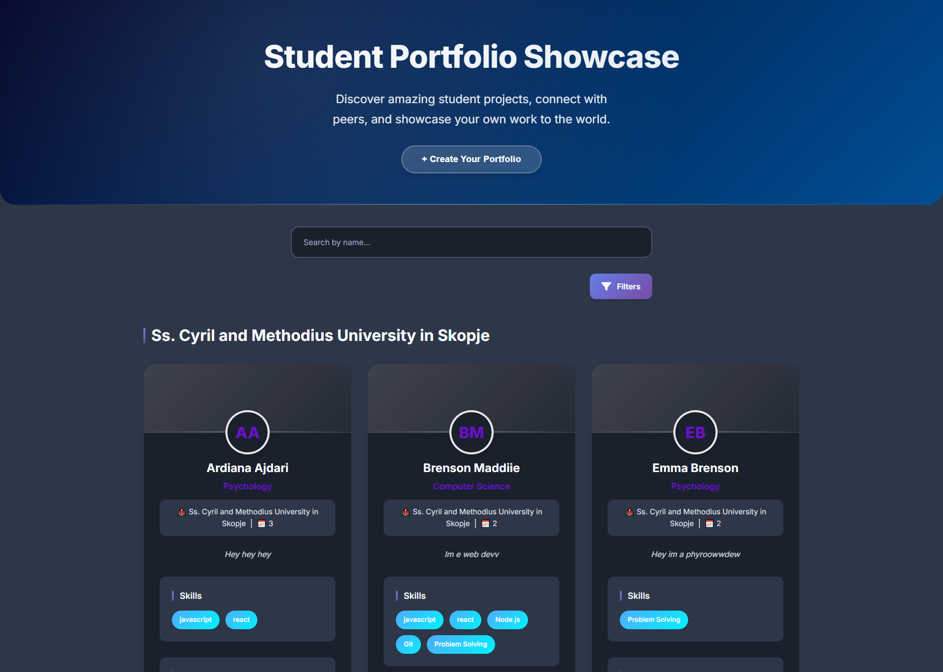Platform to showcase student portfolios with clean design.